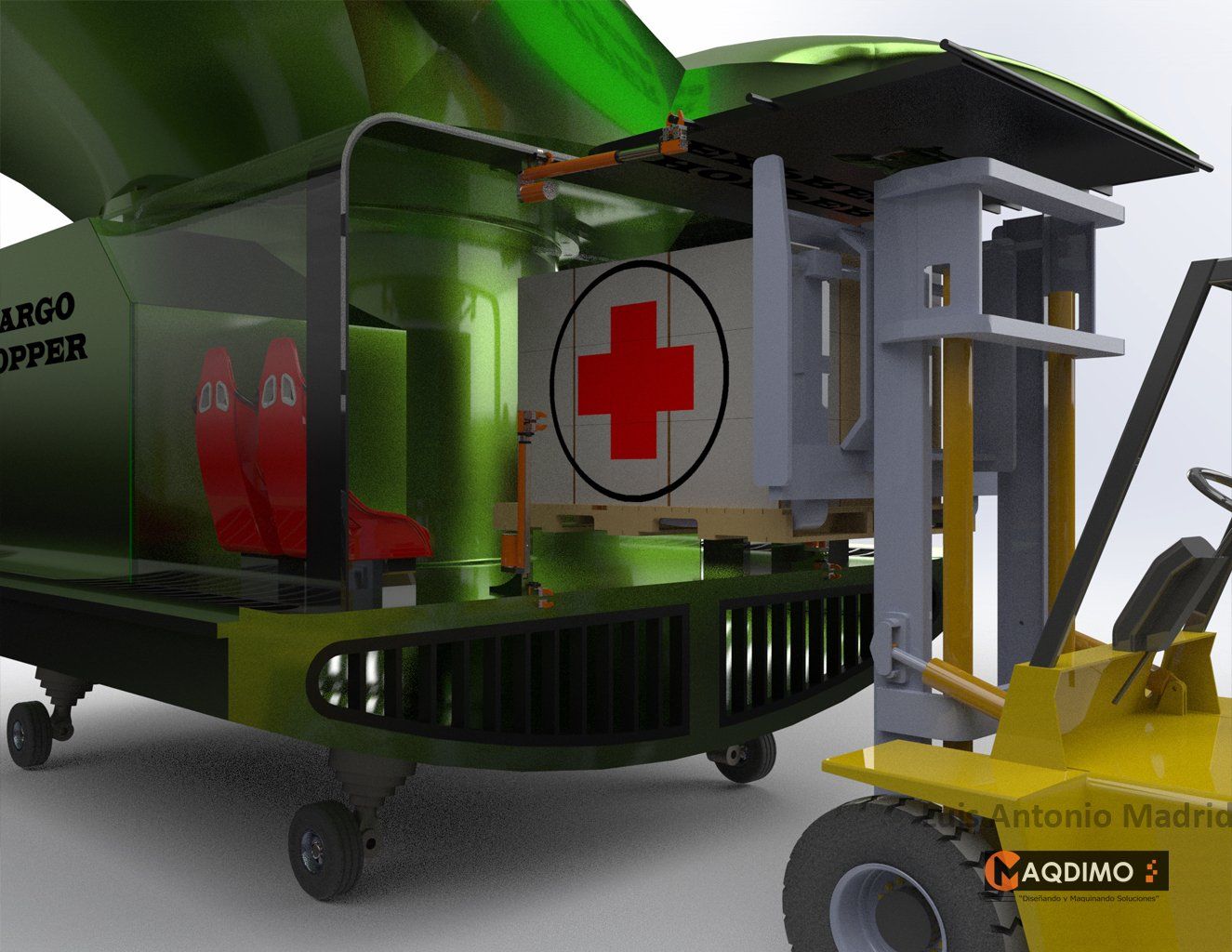 The Blue Cargo Hopper can land on water or land. The Cargo Hopper can fly with or without a interior cabin area.. The Hopper has a 6' x 12' decking area for cargo, in the front and rear of craft> for a total of 144 square feet of cargo area.. and 865 cubic feet. The Cargo Hopper can be used for Medical deliveries, ship to shore transportation of cargo. This will save time in the ports loading and unloading the ships.The ship will not have to dock to unload a couple pallets of cargo.